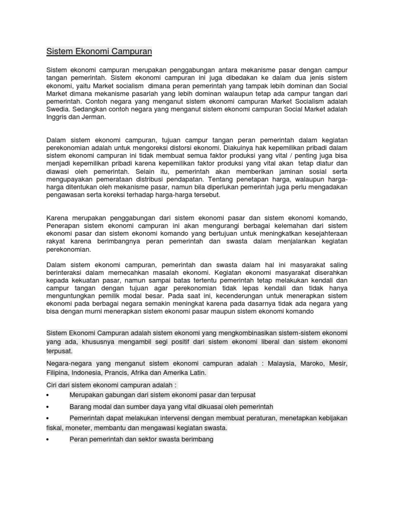 Contoh Negara Yang Menganut Sistem Ekonomi Campuran - Temukan Contoh