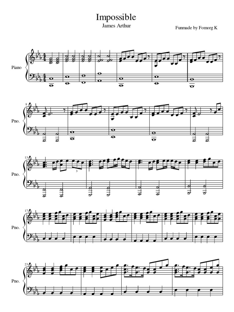 Impossible James Arthur Piano Sheet Music - Best Music Sheet