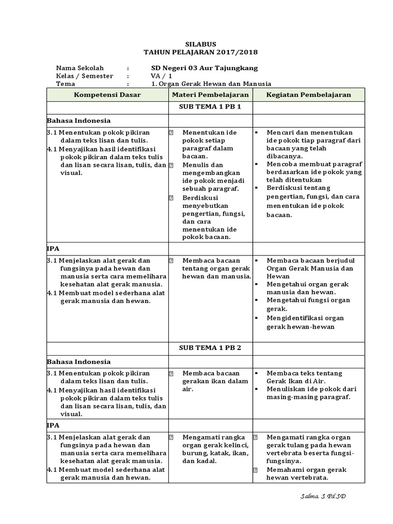 Silabus Kelas 5 SM 1 K13 TP. 2018.2019 - Websiteedukasi.com