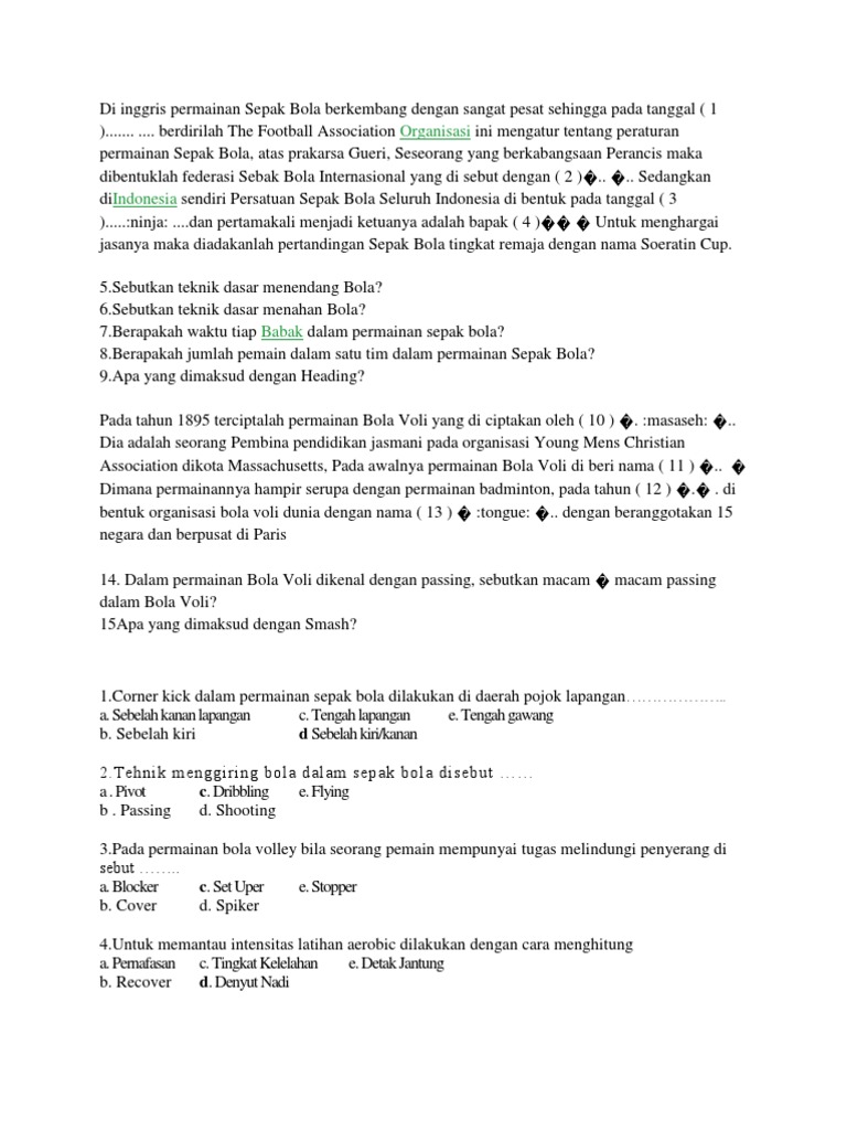 Soal Penjaskes Permainan Bola Besar - Guru Paud