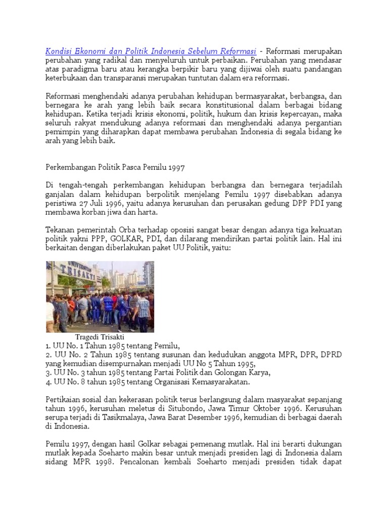 Kondisi Ekonomi dan Politik Sebelum Reformasi
