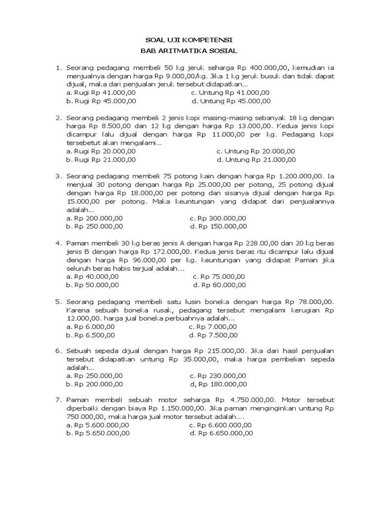 Soal Essay dan Jawaban Uji Kompetensi 6 Aritmatika Sosial Kelas 7 …