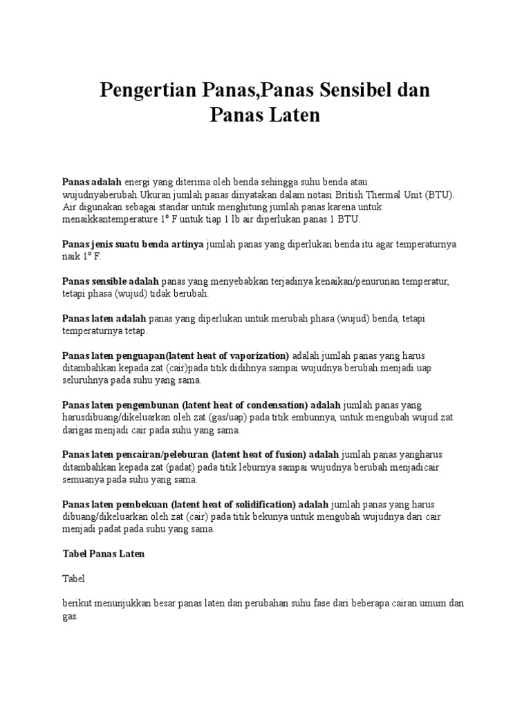 Pengertian Panas,Panas Sensibel dan Panas Laten | MECHANICAL …