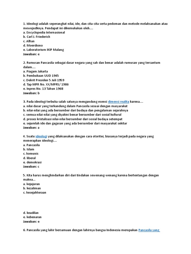 Contoh Latihan Soal Pancasila - TWK CPNS 2019 (Update) - ABI …