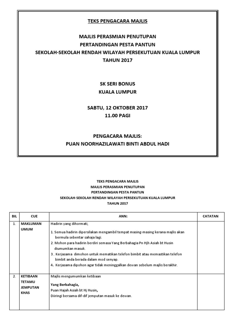 Teks Ucapan Pengacara Majlis Penutupan Bulan Kemerdekaan 2015 - [PDF Document]