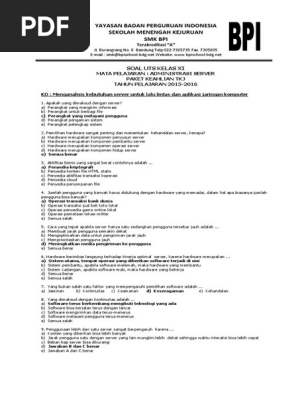 SOAL ADMINISTRASI SERVER KELAS XI TKJ.docx - SOAL ADMINISTRASI …