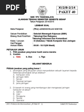 Soal Administrasi Sistem Jaringan TKJ Kelas XI