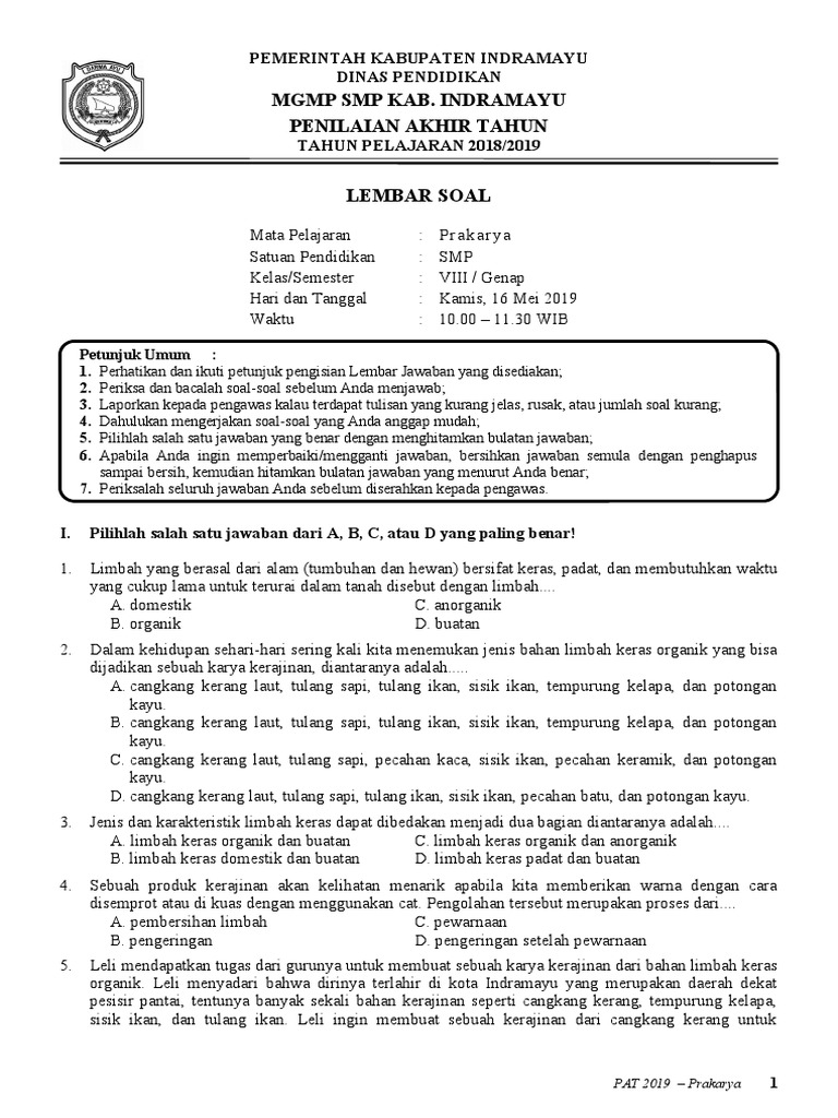 100+ Soal PAT Prakarya Kelas 8 Semester 2 dan Jawabannya I Part 1 …
