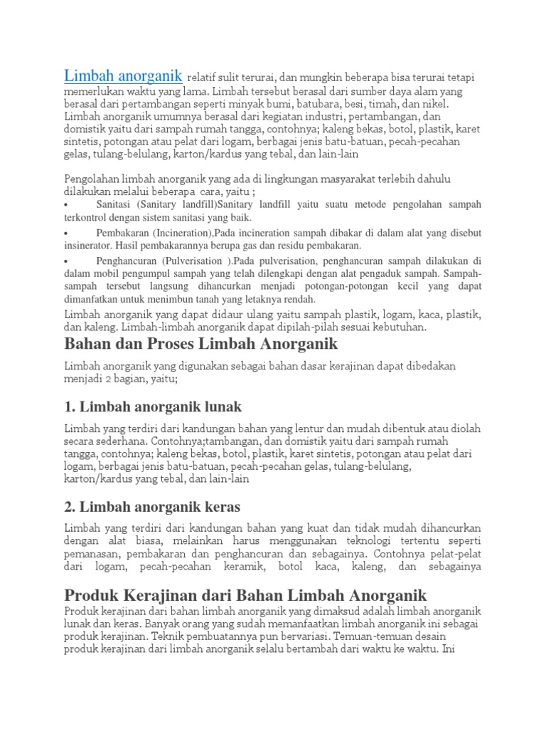 Artikel Limbah Anorganik Yang Telah Dimodifikasi