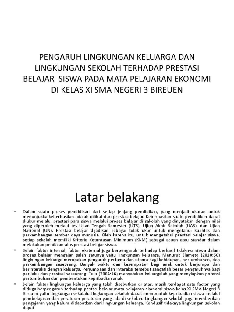 Pengaruh Lingkungan Terhadap Prestasi Belajar Siswa Pdf - Cara …