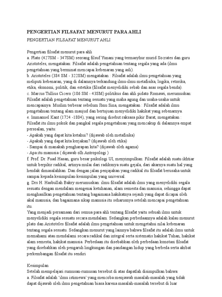 pengertian filsafat menurut para ahli dan kesimpulannya