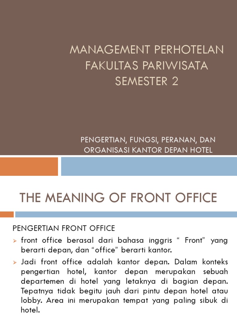 PPT) Bisnis Perhotelan Pengertian Front Office | Krishna Vine - Academia.edu