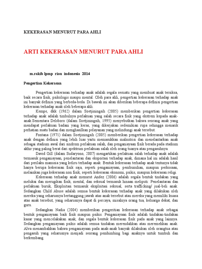 Beberapa pengertian kekerasan menurut para ahli yakni sebagai …