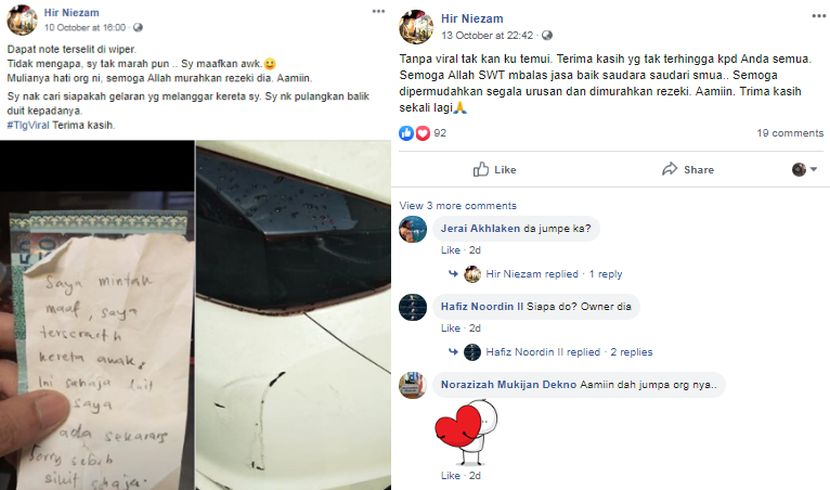 Tersentuh hati baca nota, tak sangka masih ada insan berhati mulia” – Kereta tercalar, tapi pemuda ini tetap pulangkan wang - Viral | mStar