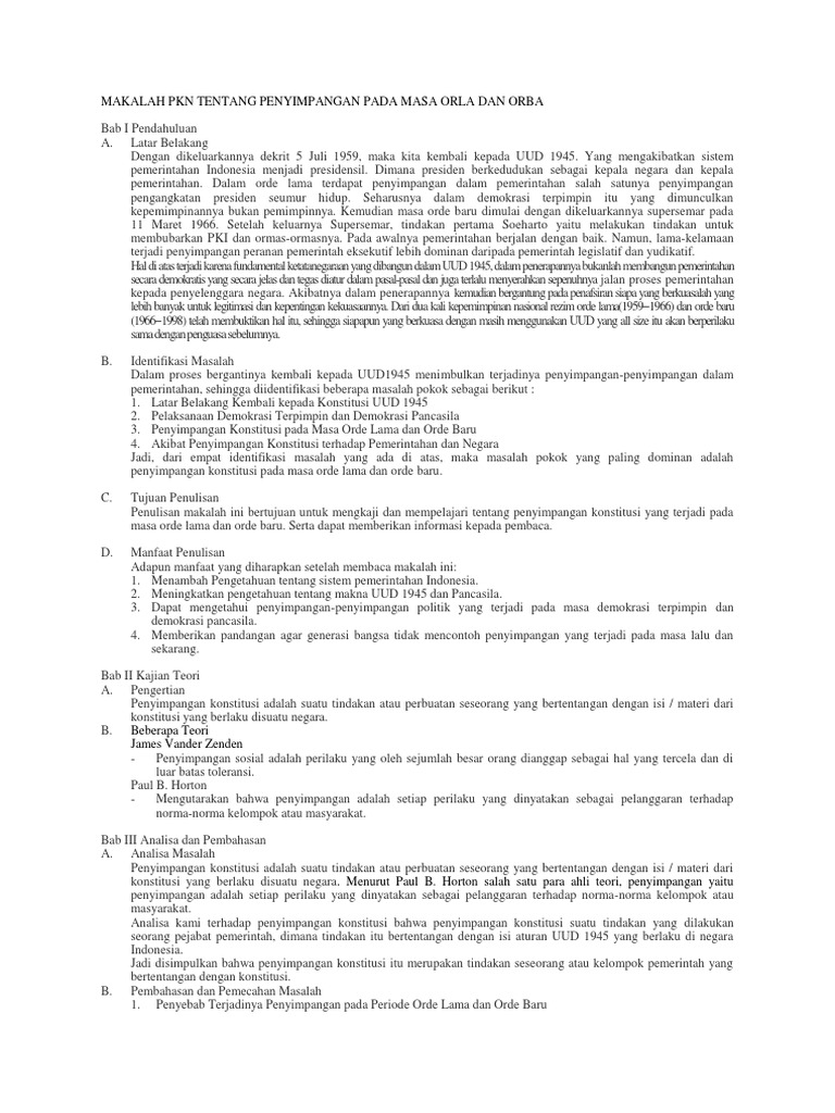 Makalah Pkn Tentang Penyimpangan Pada Masa Orla Dan Orba