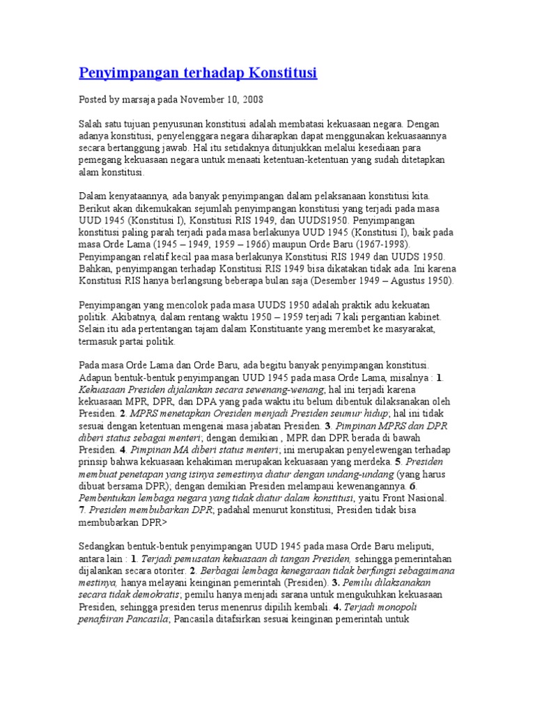 Penyimpangan terhadap uud 1945