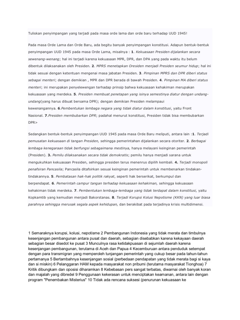 DOC) PENYIMPANGA PADA ORDE LAMA, ORDE BARU, DAN ERA REFORMASI | tsamarah t - Academia.edu