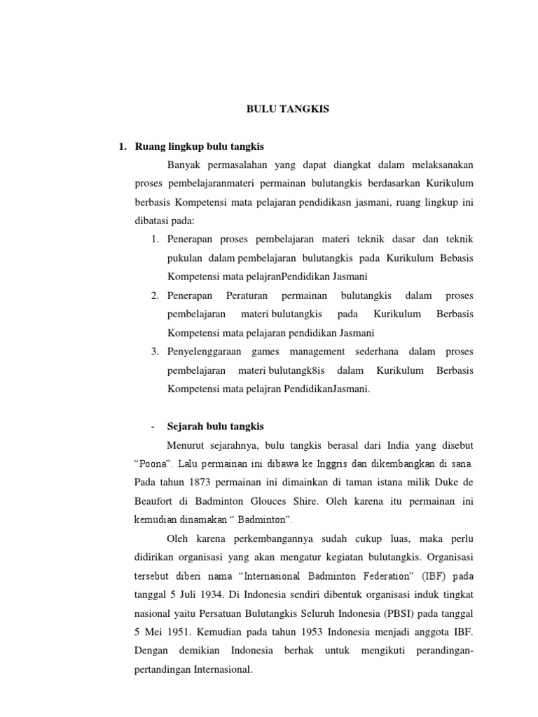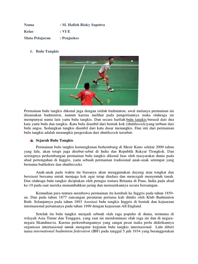 DOC) A. Olahraga Bulu Tangkis | Yuliantari Yuliantari - Academia.edu