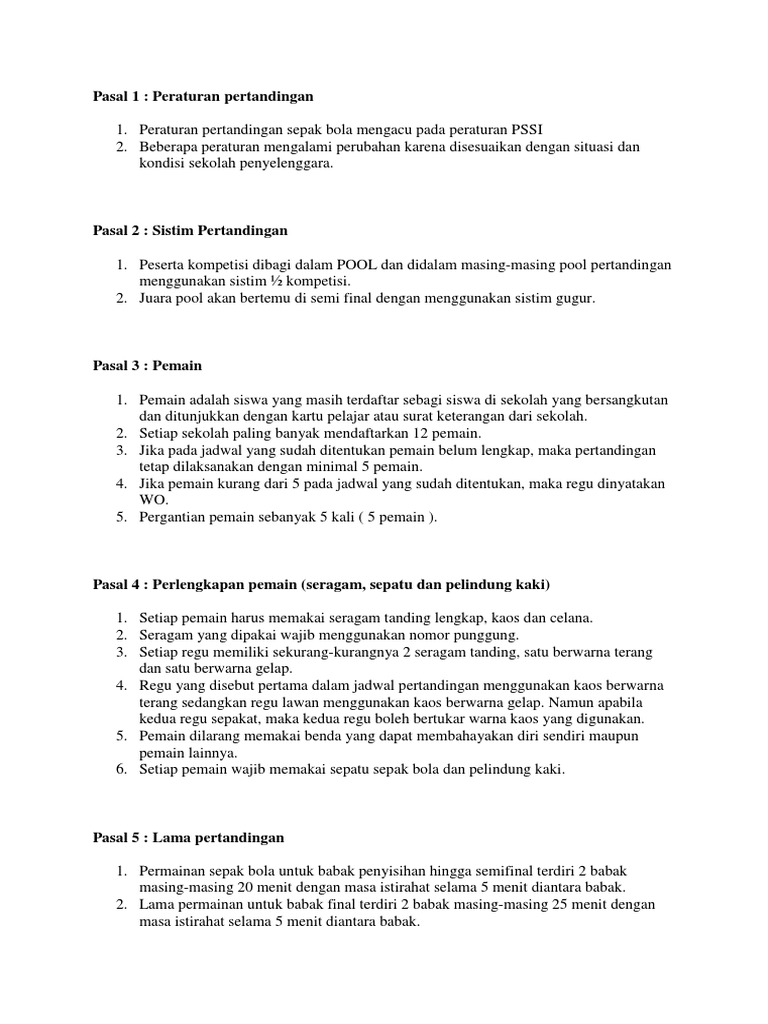 Contoh Peraturan Pertandingan Sepak Bola Mini