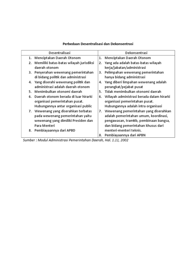 Perbedaan Desentralisasi dan Dekonsentrasi: Sumber: Modul …