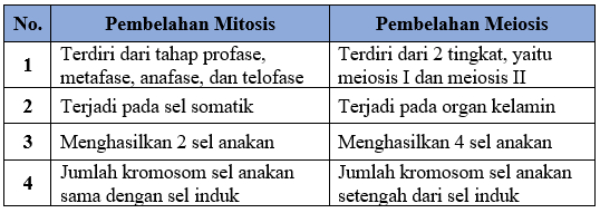 Tabel Perbedaan Pembelahan Sel Secara Mitosis Dan Meiosis