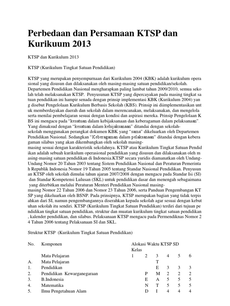 DOC) PERBEDAAN KTSP DAN KURIKULUM 2013 | Deaz Arsityawati …