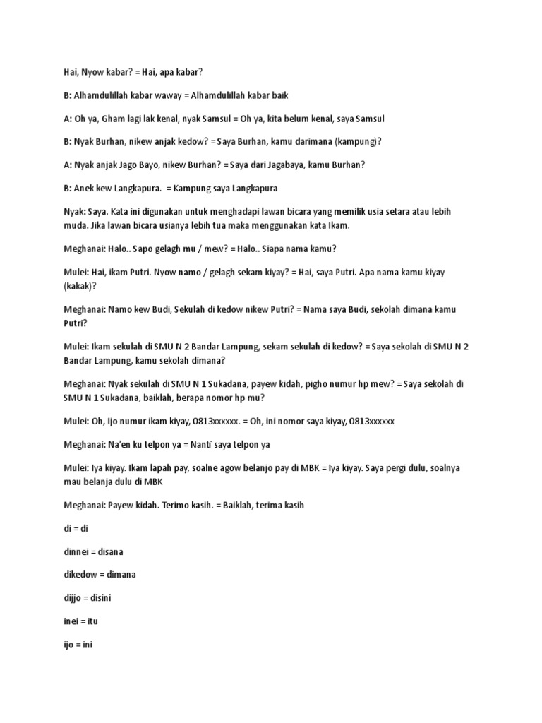 contoh percakapan perkenalan dalam bahasa lampung (dialek O …
