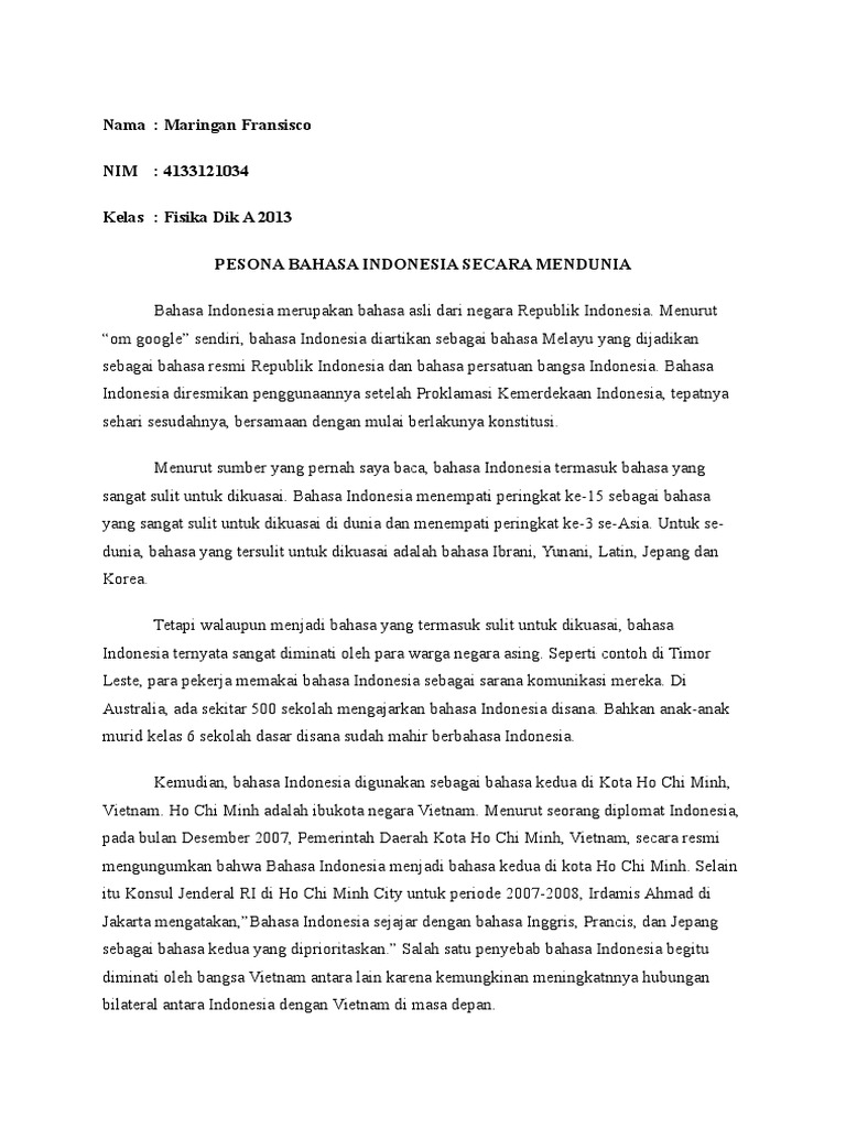 Esai Bahasa: “Bahasa Indonesia” Bahasa Tersulit ke-3 di Asia dan …
