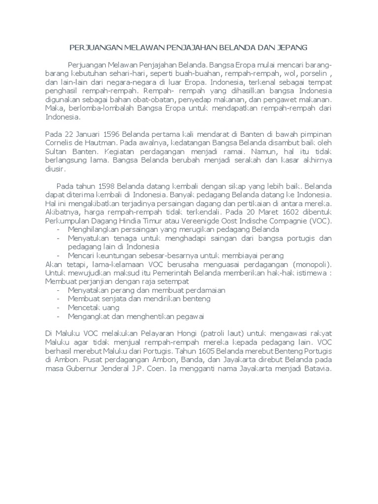 Perjuangan Melawan Penjajahan Belanda Dan Jepang