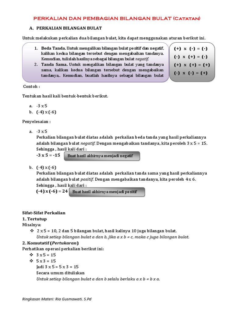 Materi Kelas 7 Perkalian dan Pembagian Bilangan Bulat - Primaindisoft