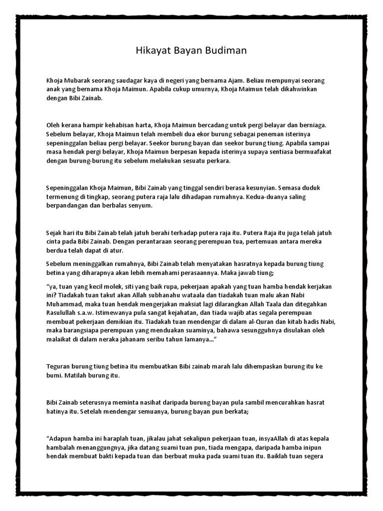 ubahlah hikayat “bayan budiman” menjadi cerpen dengan : 1 …