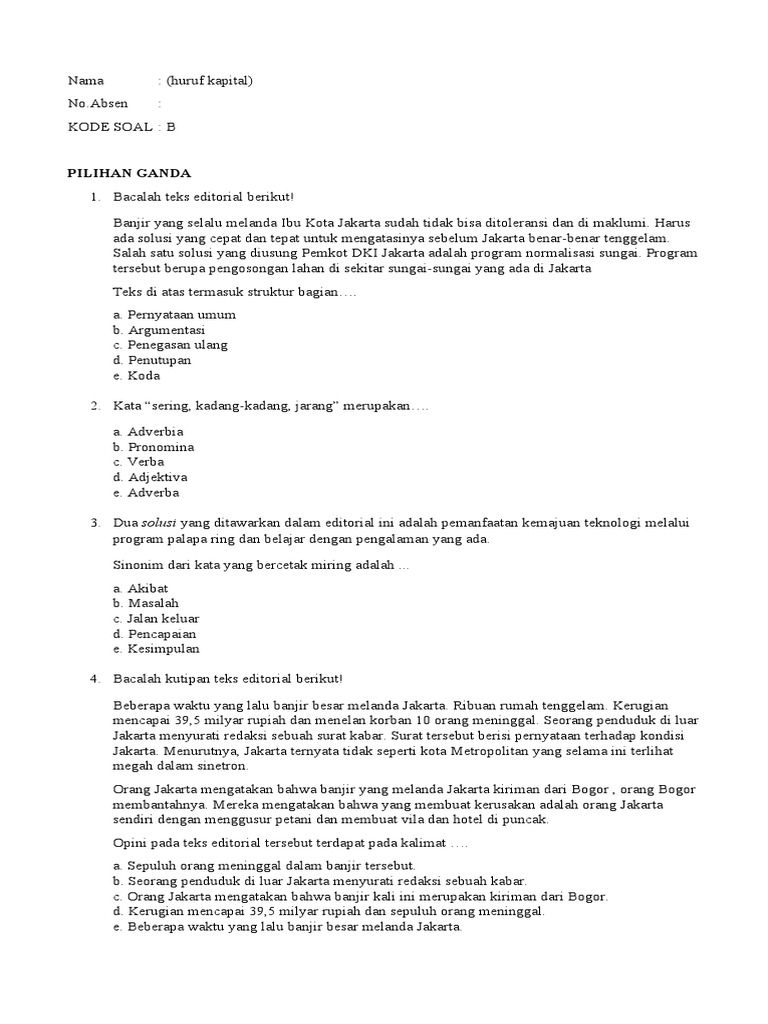 SOAL TEKS EDITORIAL KODE B