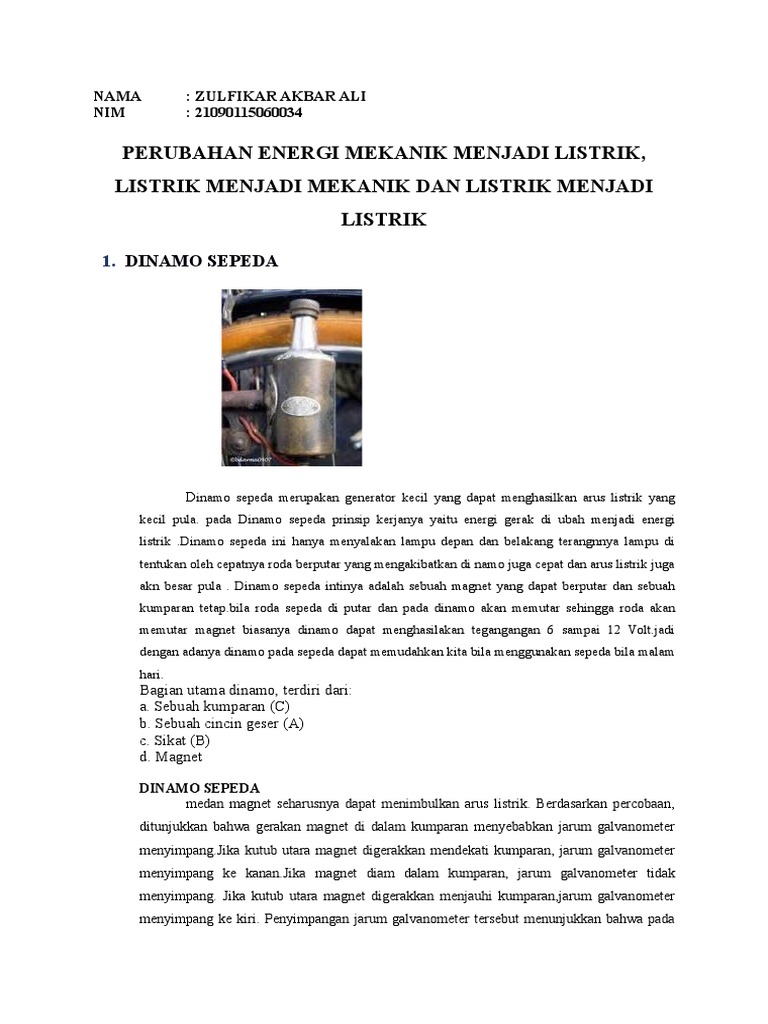 perubahan energi yang terjadi pada dinamo sepeda saat dikayuh …