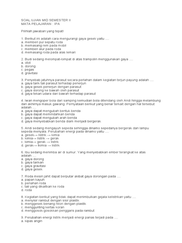 Soal UTS IPA Kelas 6 Semester 2
