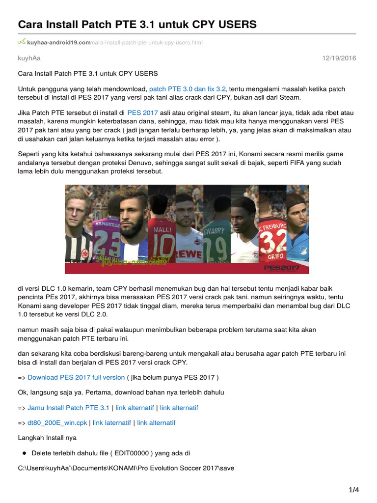 PTE Patch 4.0 PES 2017 Kuyhaa Bagas31 - KLIKDisini - Tempat Bagi Bagi