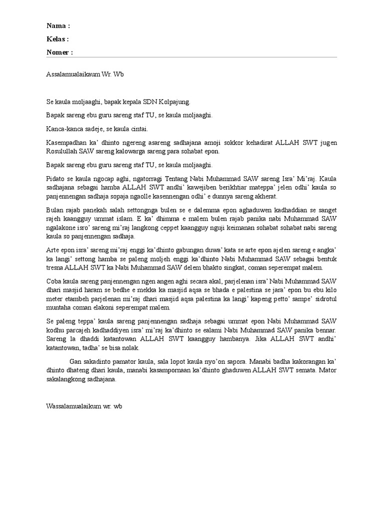 Teks Pidato Bahasa Inggris Tentang Isra Mi Raj Berbagai Teks …