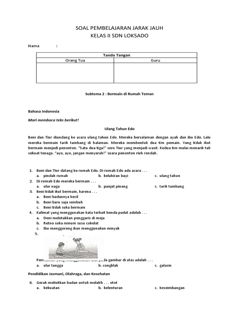 Soal Kelas 1 Tema 2 Subtema 2 dan Kunci Jawaban – Osnipa