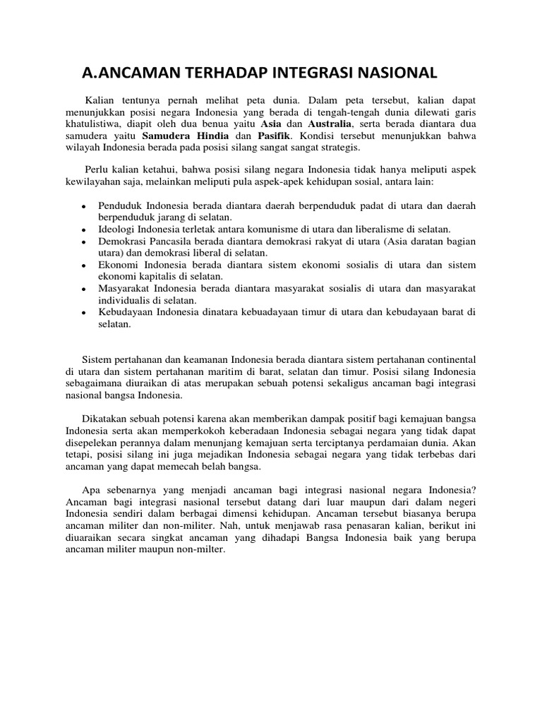 DOC) Ancaman terhadap integrasi nasional | nisa afifah - Academia.edu
