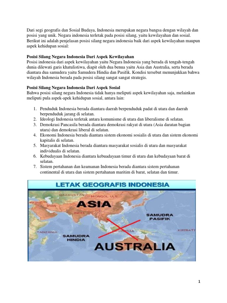 Posisi Silang Negara Indonesia Baik Dari Aspek Kewilayahan Maupun …