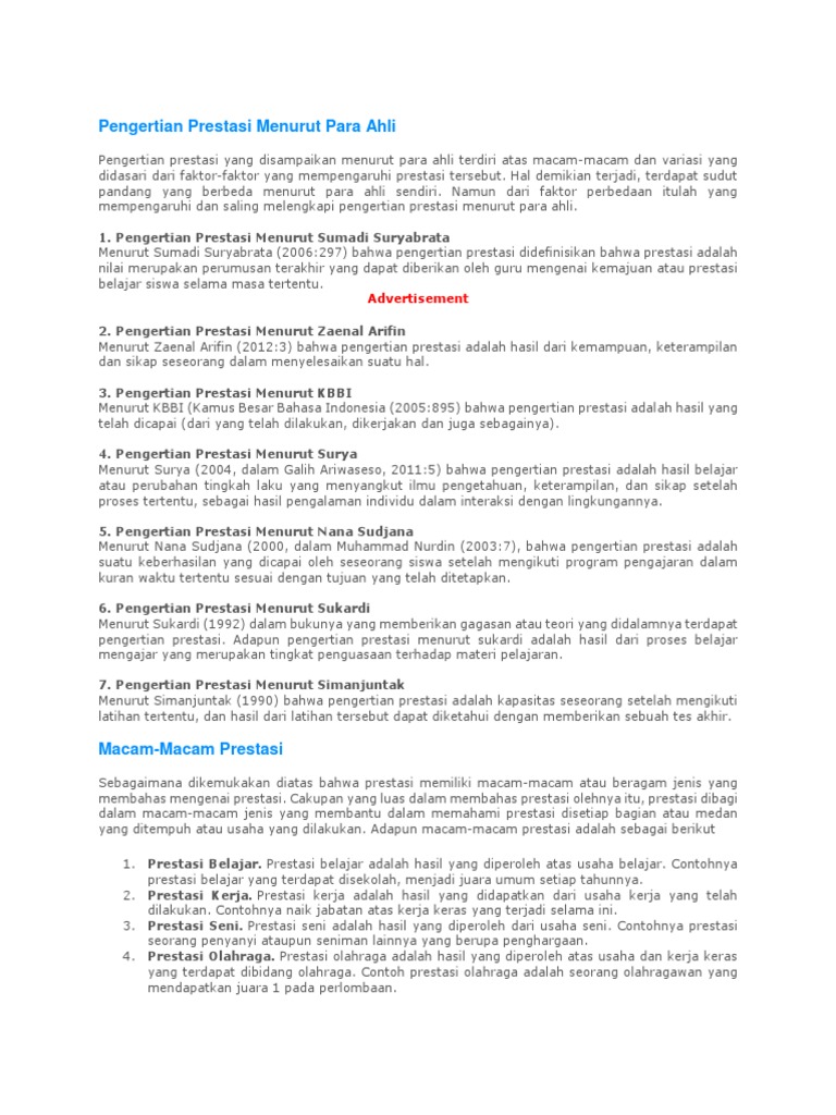 Pengertian Prestasi Menurut Para Ahli