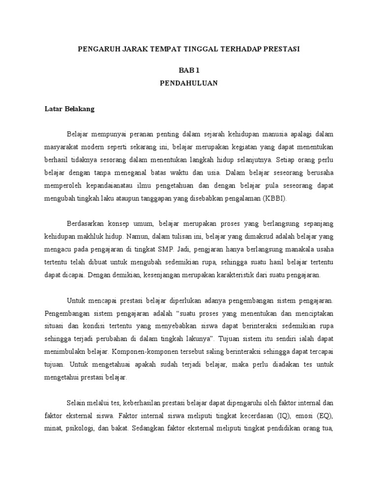 Pengaruh Jarak Tempat Tinggal Terhadap Prestasi