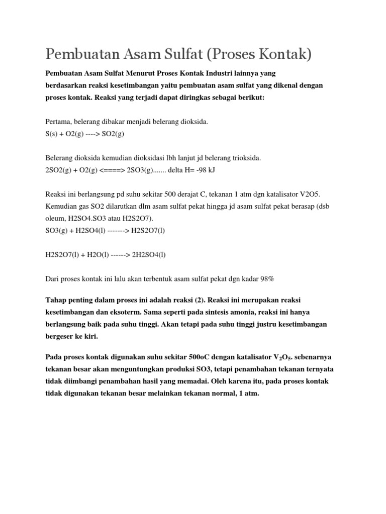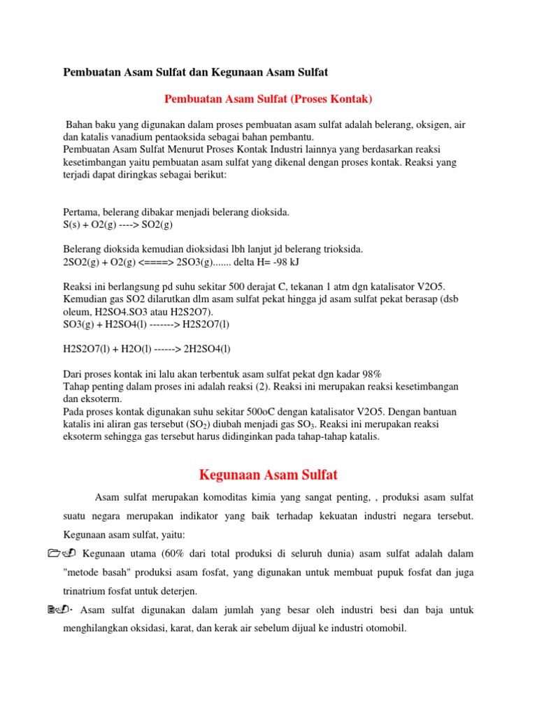 DOC) Proses Kimia (Asam sulfat) | faranisya asyifa - Academia.edu