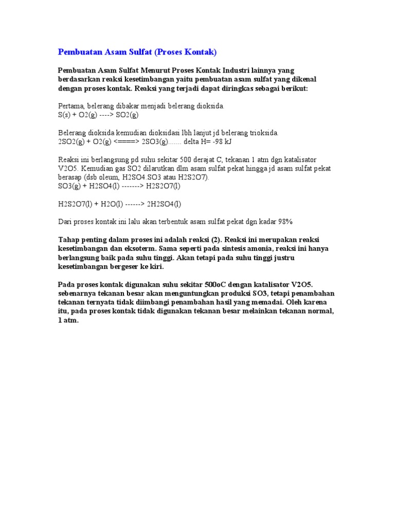PDF) TUGAS PIK 2 PROSES KONTAK PADA PRODUKSI H2SO4 | Sangga Pratama - Academia.edu