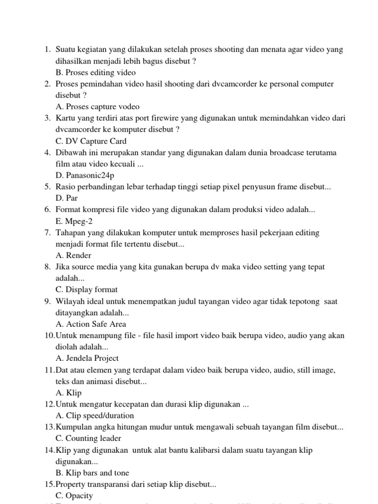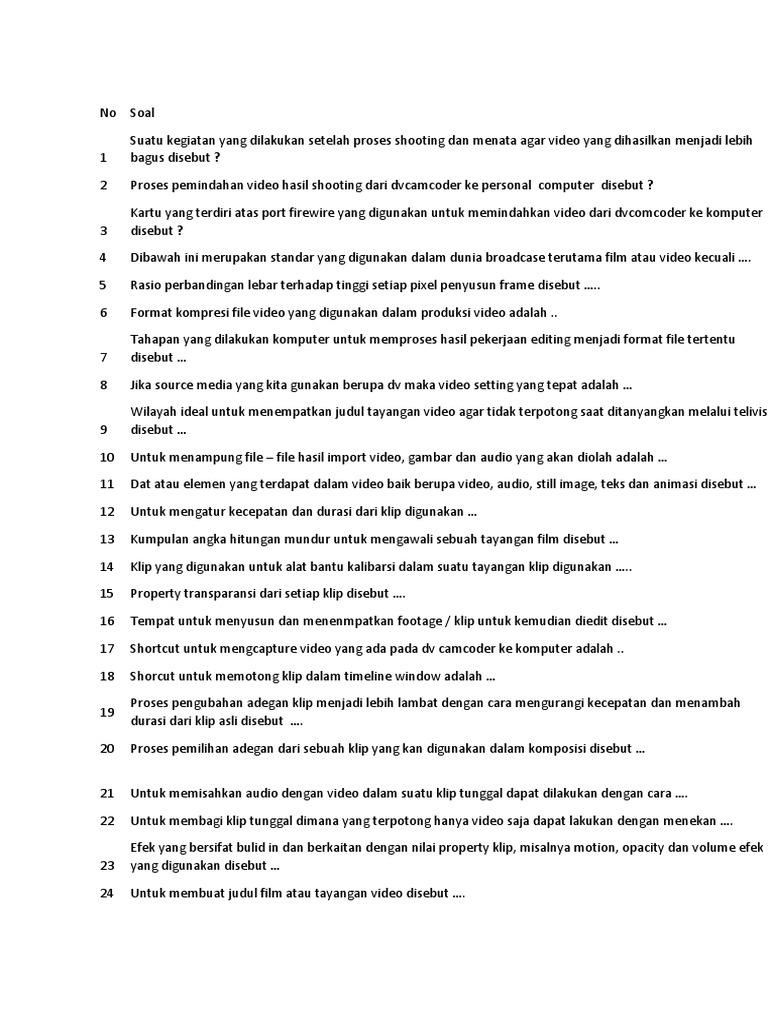 1.1 Soal Jawaban Teknik Pengolahan Video