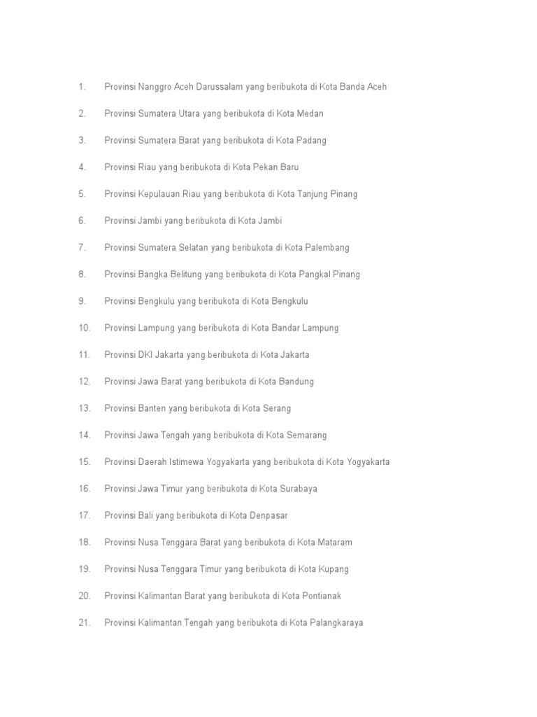 Nama Nama Provinsi,Ibukota,Kabupaten,Dan Kota Di Indonesia