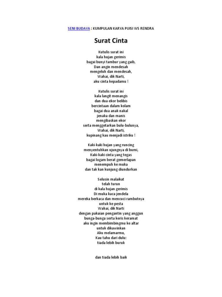 Puisi Cinta Ws Rendra - Celoteh Bijak