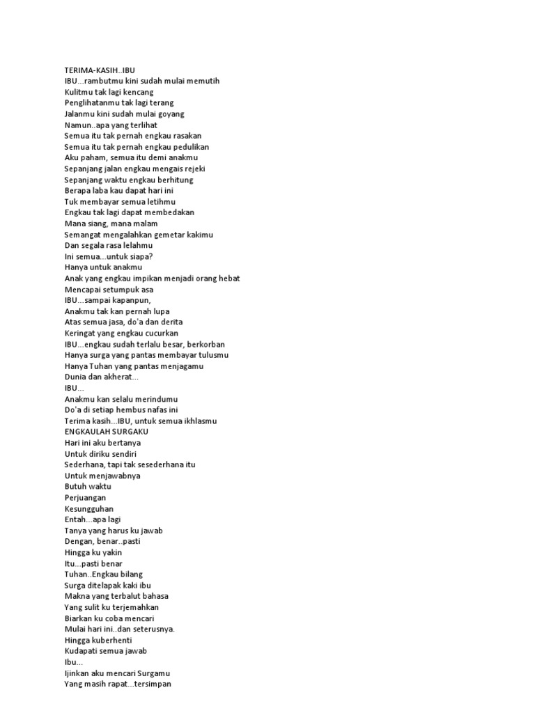 Trima kasih Ayah.Ibuku - Tolong share ya Ini puisi untuk ibu kita Karena dibawah telapak kaki ibu. ADA SURGA Oleh karena itu hormatilah ibukita Agar kelak kita masuk SURGA… Aamiin..yarobbalallamin | Facebook