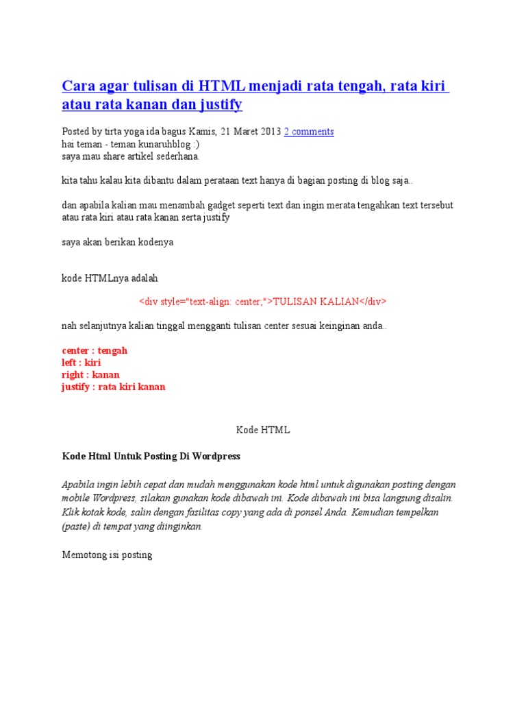 Cara Agar Tulisan Di HTML Menjadi Rata t - [PDF Document]