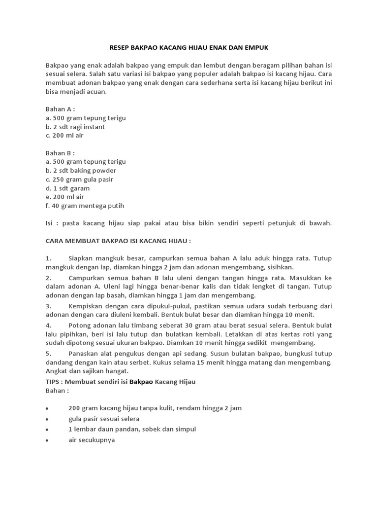 284 resep bakpao kacang hijau enak dan sederhana ala rumahan - Cookpad