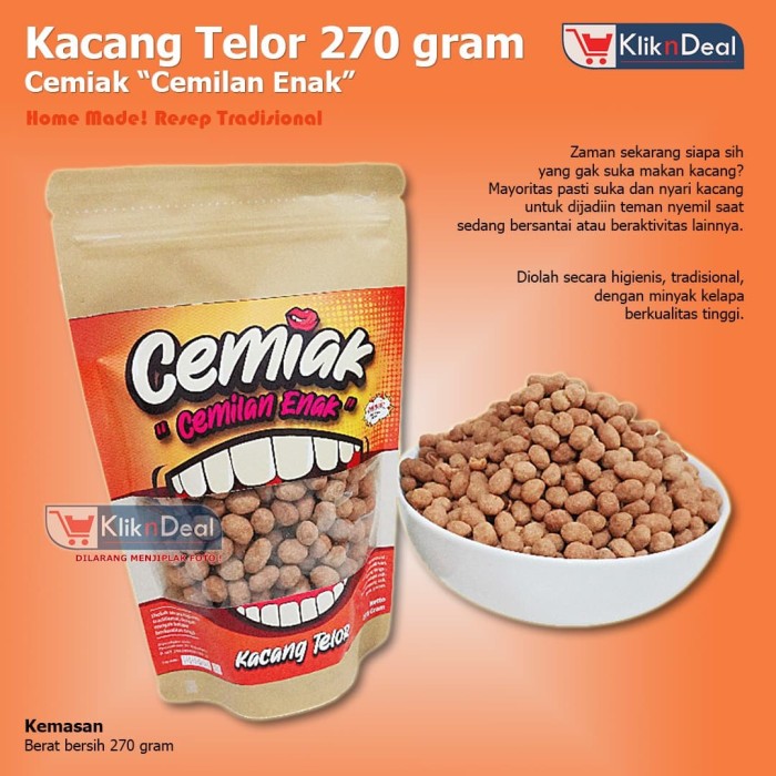Jual CEMIAK Kacang Telur Makanan Ringan Kacang Telor Atom Oven 270gr - Kab. Tangerang - KLIK N DEAL | Tokopedia